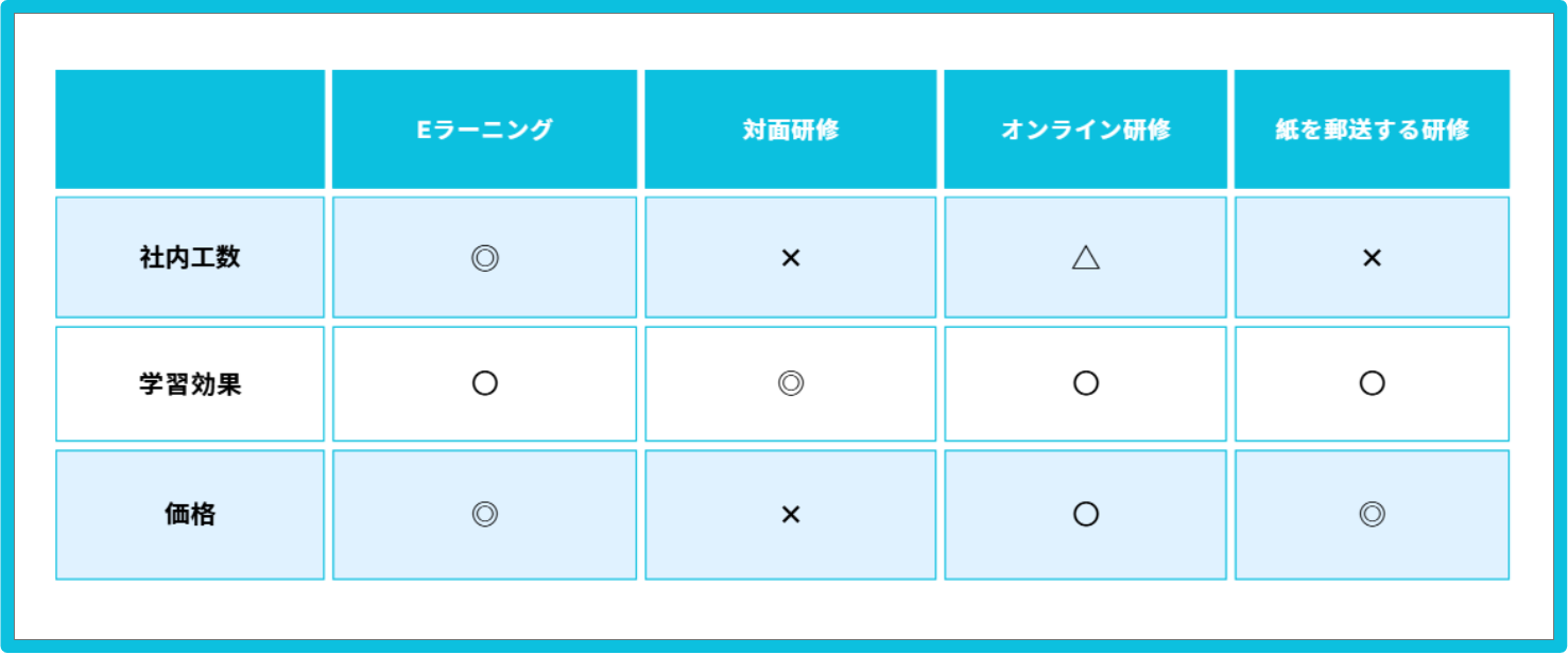 eラーニングは社内の管理工数/価格の面で優れているため、導入される機会が多いです。